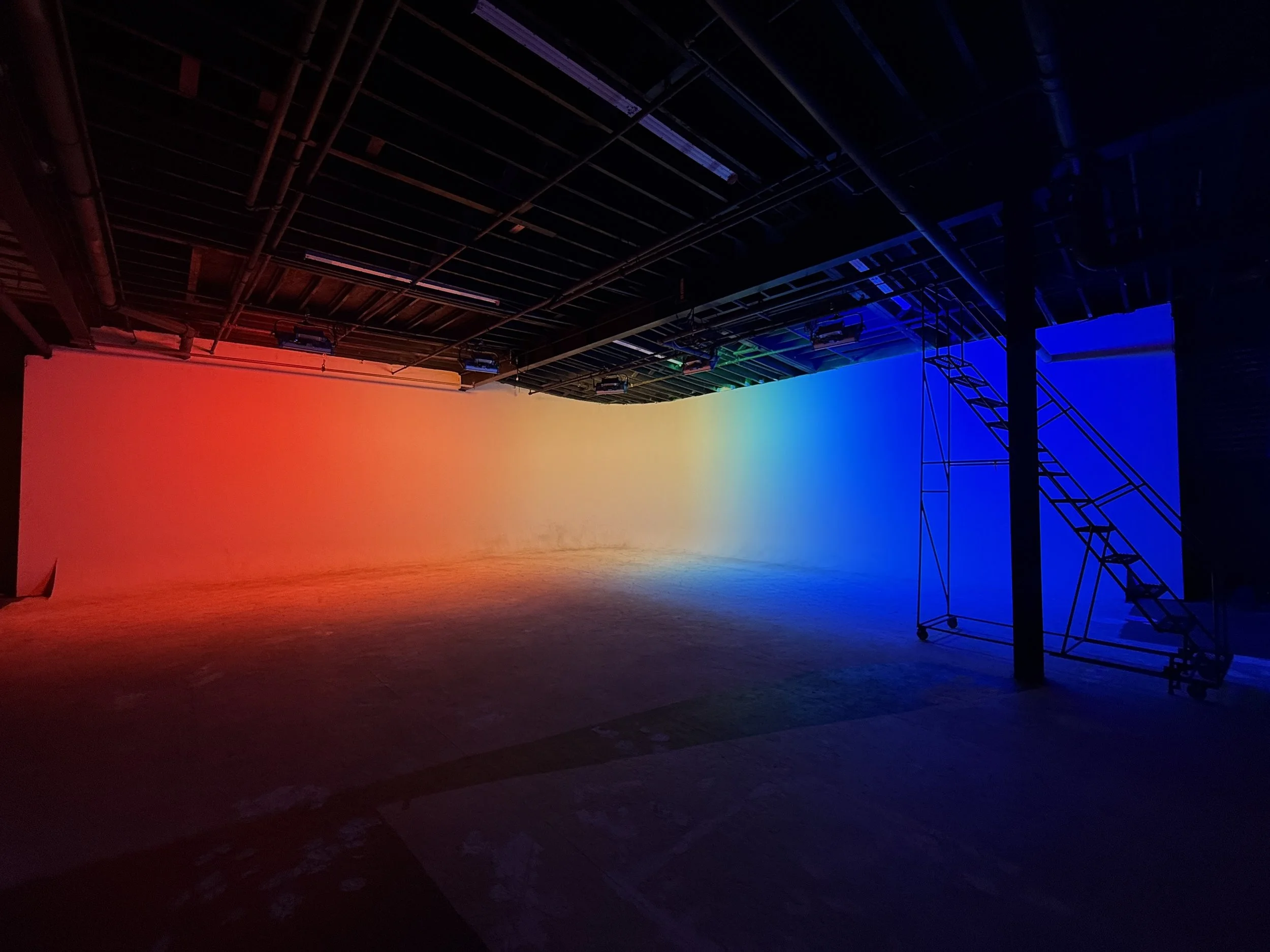 Our White cyc stage. Includes a large staging area and independent kitchen, green room and production support facilities directly off the stage. Stage 02 also includes a 14’ bay door with direct access to our parking lot for easy load-in.